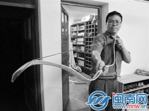 闽南网11月12日讯 喜欢阅读古籍的福州“70后”万山,从2008年至今制弓30多张。聊起北京六旬翁廖师傅近日制造出失传已久的“诸葛连弩”,万山说,弩其实就是在弓的基础上加托把与扳机,“但我只专注于弓”。
