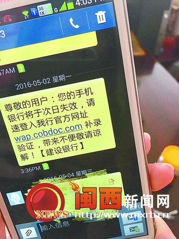 记者发现,类似诈骗还有:“手机银行将于次日失效,请快速登入我行官方网址补录验证”等(如图)。不少银行的官方号码被伪基站利用,迷惑性强。就此,建行龙岩溪南一网点的工作人员称,短信系统只会识别号码,还无法辨别这号码是伪基站发的还是银行发的,因为伪基站可以设置任何号码,因此诈骗信息会出现在用户日常接收银行发来的短信里。他提醒到,银行发来的短信里通常不会有网址或链接,若用户还收到这类短信,不要点击里面的链接或网址,另外还可上网查询该银行的官方网址,对比一下就知道网址的真假性。记者 钟丽琳 文/图