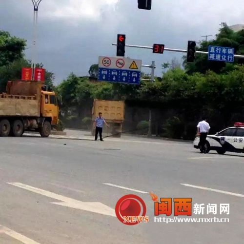 新罗交警江榕撑起掉落的电缆线 被货车勾倒受伤