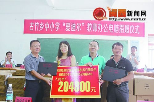 6月3日,永定区古竹乡外出乡贤、深圳市“爱迪尔”珠宝股份有限公司董事长苏日明向古竹中小学捐赠64台电脑,总价值20多万元,用于改善学校教育教学条件。