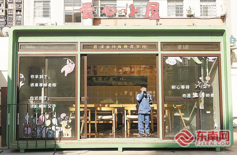 霞浦县特教校门口设置的爱心小屋,提前到校的或等待家长接送的学生可在此休憩。