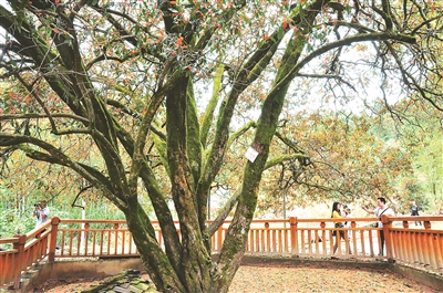 游客在“九龙桂”前拍照留念