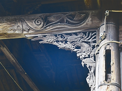 房梁四周都雕刻着精美图案