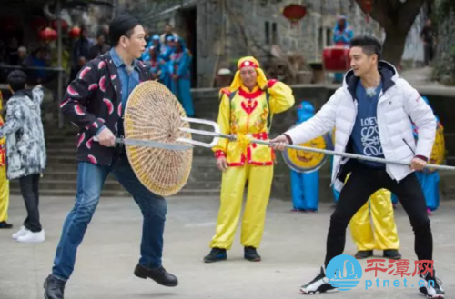 平潭藤牌操是明代流传下来的非物质遗产,当激扬的鼓声响起,温兆伦操刀持牌而出,抵挡“敌方”田亮不断飞舞而来的长矛,同时手持短刀欺身向对方攻去,看起来就特别很有趣呢。