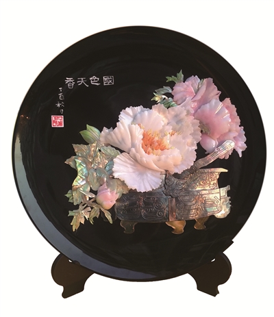 平潭贝雕有平磨嵌贝、浮雕、圆雕三大系列,平潭贝雕艺术馆为圆桌会议精心设计的是属浮雕系列的《花语》套系,共五样单件。每件贝雕的底盘材料都为木质黑漆,规格为直径30厘米。五件贝雕分别表现的是水仙、荷花、栀子花、梅花、牡丹五种花盛开的形态,并根据每种花的花语给贝雕作品命名,传递吉庆、友谊等含义。(记者 陈小欢)
