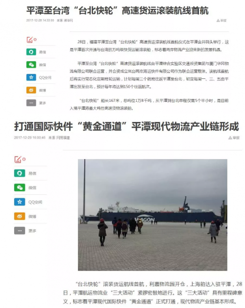 28日,“台北快轮”载货首航,利嘉物流园开仓,上海韵达入驻平潭。这“三大活动”具有标志性意义,象征着平潭现代国际快件“黄金通道”已正式打通,现代物流产业链基本形成。