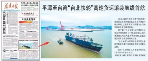 头版主图原标题《平潭至台湾“台北快轮”高速货运滚装航线首航》
