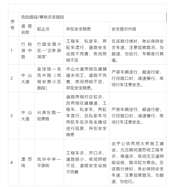 危险路段、事故多发点段