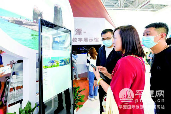 在平潭展区大屏幕上,市民体验“畅游平潭”小程序