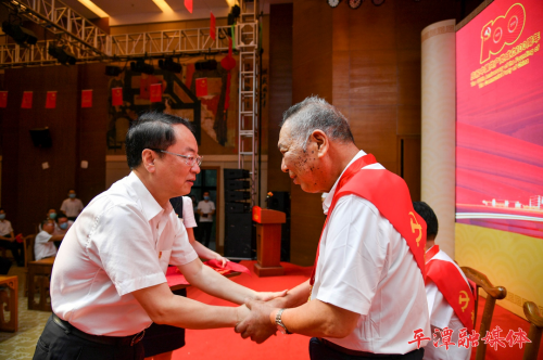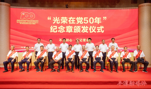 为庆祝中国共产党成立100周年,6月29日,实验区举行“光荣在党50年”纪念章颁发仪式。