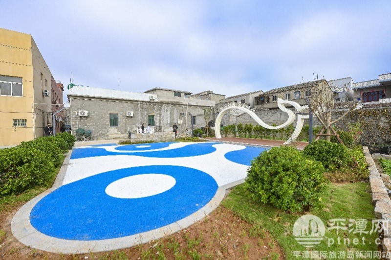 “海洋口袋公园以蓝、白为主色调,搭配绿化景观,并在草坪上点缀鱼群造型装饰,突出海洋元素。”工程施工负责人高海敏介绍,村道旁部分房屋的外墙经过真石漆改造,质感显著提升。
