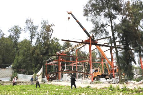 记者近日在湄洲岛北埭村看到,一家石材厂经营者正在对自家的石材加工厂进行拆除(如图)。