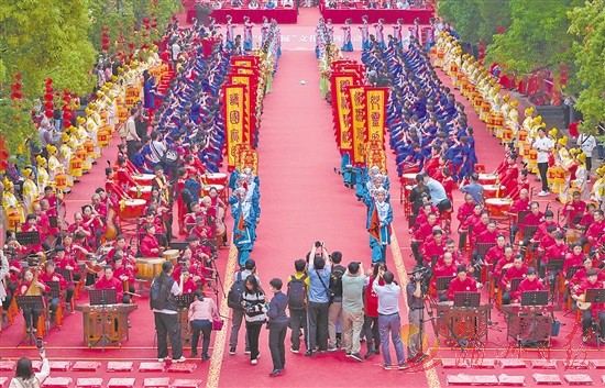 图为2024“妈祖诞”文化系列活动开幕式暨“春祭妈祖”大典在懿明楼广场举行。 全媒体记者 陈斌 摄