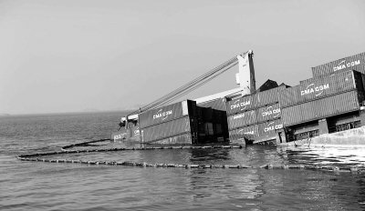 大力号浮吊船昨日对搁浅“BARELI”轮上的集装箱进行起吊。但轮上101个装有化学危险品的集装箱,目前尚未卸载。而事故发生后,海面上曾出现了一条3公里左右的油污带,清污船已在附近海域抽取了3吨油污水。