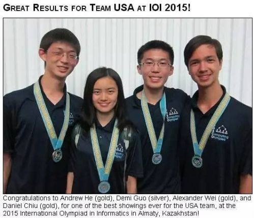 ▲郭同学代表美国队参加2015年国际信息学奥林匹克大赛,获得佳绩。截图自:USACO官方账号及官网。