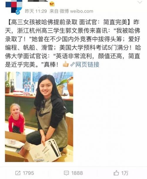 近日,一则杭州高三女生被美国哈佛大学提前录取的新闻,刷爆了互联网。当然,这则新闻之所以能被媒体关注,并进而在网上火爆,不仅是因为那位女生确实才华出众,更是因为她还是一个美女,而这在我们中国这个“看脸的社会”,又是一个很大的Buff…
