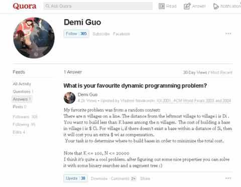 ▲截图为去年3月25日,郭同学在国外的"知乎类"网站Quora上回答别人提出的编程问题。