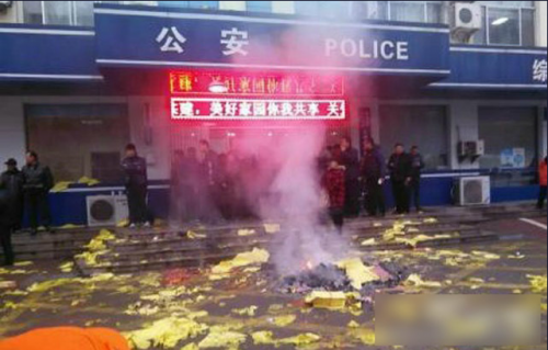 临沂16岁蹊跷死亡男孩父母在派出所烧纸 现场图片曝光