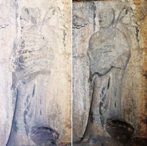 看经寺摩珂迦叶雕像(左)及复原图(右)