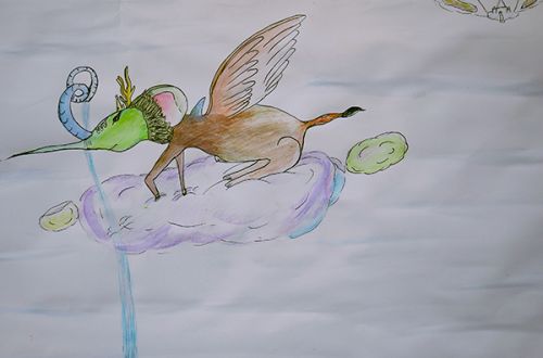 “云朵上的水珠变成了一个个的小人儿,