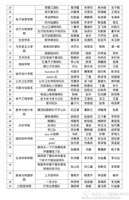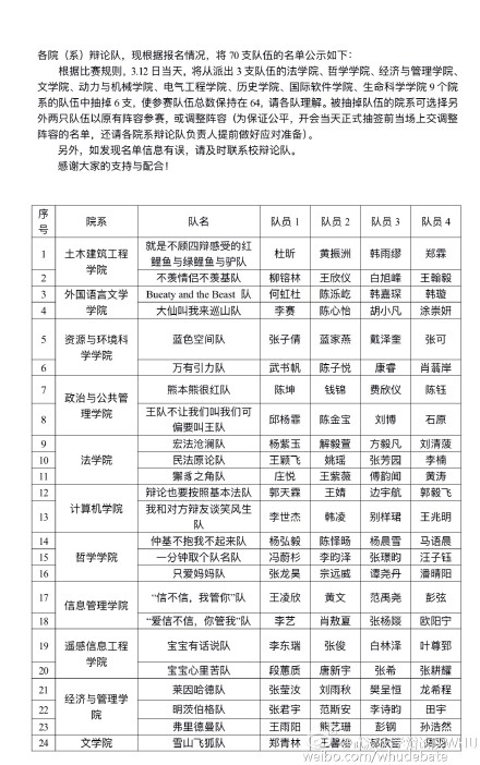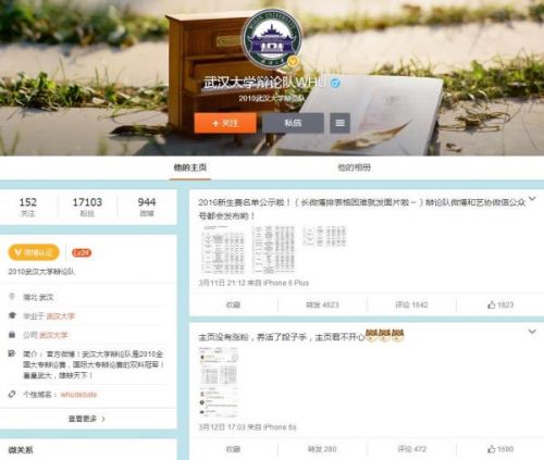 武汉大学辩论队微博页面 本文图片都来源于微博