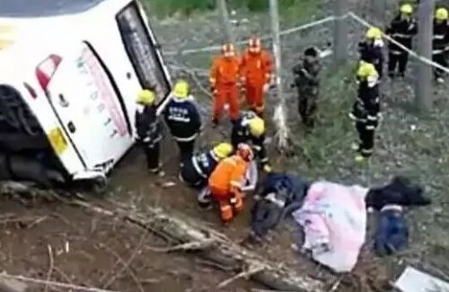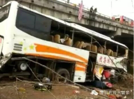今天清晨,一辆河南牌照的大客车行驶到安徽宿州萧县境内时,失控撞断防撞护栏,翻到路边沟里,造成6人遇难。