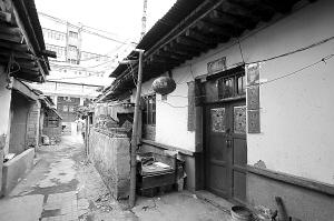 穿过一段狭窄的通道,就到了事发的出租屋门前,挂在门口的红灯笼和对联格外醒目,两扇木质门板紧闭,挂着一把铁锁。门口的地面上,一大片血迹令人胆寒,门板上也有几处血迹。透过门缝往内看,屋子地面上全是血,塑料水桶上、冰箱上、以及其他家具摆设上均有血迹。