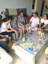 社区工作人员看望李明(左三)和他的母亲(左二)。社区供图