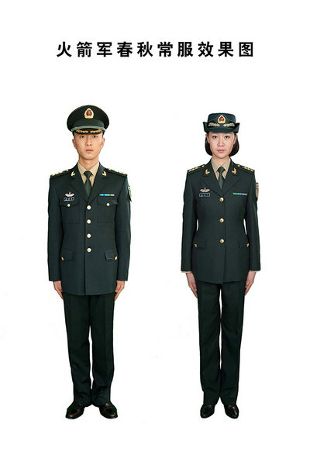 据记者了解,火箭军礼(常)服颜色采用墨绿色搭配卡其色,礼服、春秋常服、冬常服、夏常服裤、大衣等为墨绿色,与火箭军主战装备的外观颜色相近;衬衣和长(短)袖夏常服上衣为卡其色,与我军其他军种服装颜色区别明显。整体着装效果庄重沉稳、精致大方, 能够进一步彰显战略导弹部队的地位、属性和特色,增强火箭军官兵的使命感责任感荣誉感。为避免造成浪费,今年5月夏服发放,火箭军官兵未换发陆军制式礼 (常)服,库存的服装调整给陆军部队使用。(记者 李文姬)