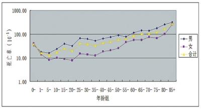 2015年洛阳市居民分年龄组伤害死亡率曲线