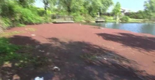 误把浮萍当跑道溺亡 红色浮萍连片神似塑胶跑道