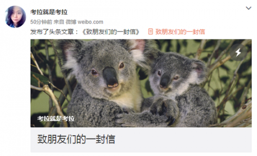 我对自己年轻单纯、涉世未深、偏执盲目铸成的大错感到追悔莫及,并真心悔悟,我愿为我的过错承担责任,今后我将告别旧我,不负韶华,给大家展现一个全新的考拉。
