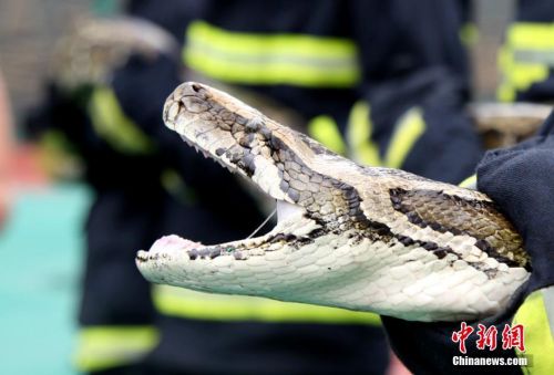 图中蟒蛇口腔内牙齿清晰可见。吴从昊摄