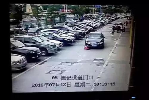 广东河源长鸿花园停车场附近女司机撞倒7岁幼童后碾压现场图