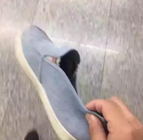 由于看不过这种不文明现象,这名乘客悄悄拿走了男子的鞋,扔进了垃圾桶。