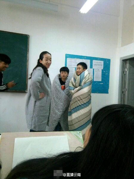 昆明一雨成冬冻成狗!两同学裹被去上课现场图曝光