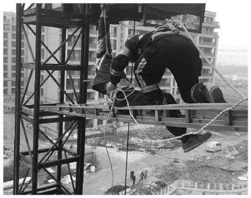 工人失足挂在高空 真是命大!一条保险绳保住性命
