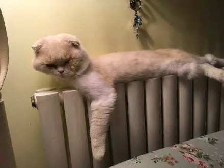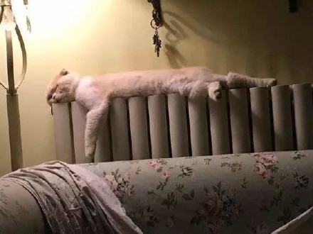 照片中,一只慵懒的喵星人如液体般躺在暖气片上,姿势相当销魂。然而,这并不是最精彩的部分,当喵星人醒来那一刻,主人瞬间被逗乐,它的一半脸竟然被睡扁了!