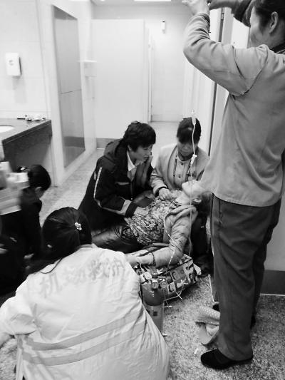 大家紧急救护发病乘客,穿深色衣服者就是赵玉娟。