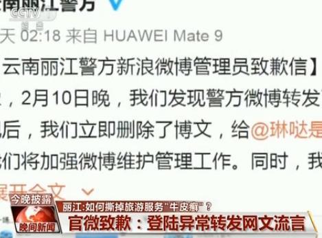 随后,丽江警方微博管理员紧急删除了该条微博。并于昨天凌晨在微博上发布致歉信,指出警方官方微博登陆出现异常现象,转发博文不代表官方立场。