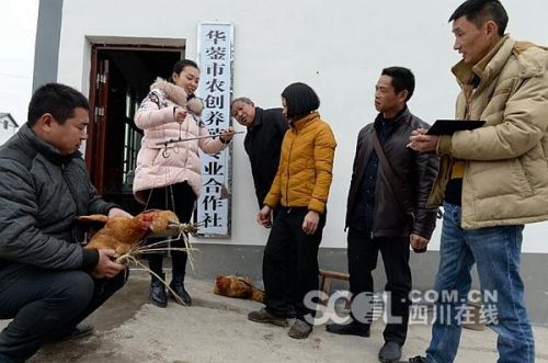 段巧灵(左二)帮助村民通过合作社卖鸡。