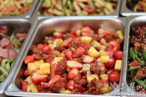 湖北大学食堂升级版“黑暗料理” 草莓菠萝辣子鸡颜值高