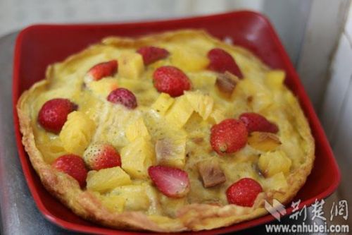 3月1日,从湖北大学获悉,该校通识教育学院问津食堂一天前再次推出“高颜值”黑暗料理新品:鲜亮剔透的果肉缀在金盏盏的滑蛋皮里,辣子鸡搭配时令水果草莓。