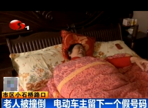 女子撞倒老人留假号码 小区监控录像拍下过程(图)