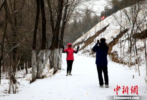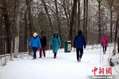 图为市民们在雪中晨练。 孙睿 摄