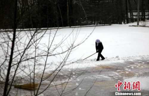 图为一名市民正在清扫积雪。 孙睿 摄