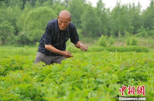 赵希海老人生前在自己苗圃精心育苗 李广友 摄