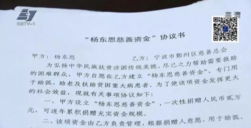 2015年8月,他捐款两万多给当时的江东区慈善总会,成立了“杨东恩慈善基金”。