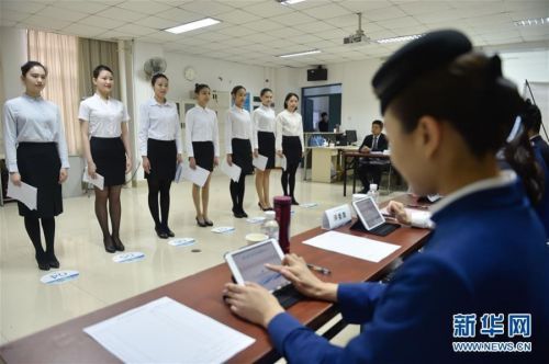 3月12日,在福州大学厦航空乘招聘现场,前来应聘的学生在接受形象初审。当日,厦门航空在福州大学启动乘务(安全)员招聘,吸引数千名学生前来应聘。据了解,厦航2017年度计划面向全国招收1500名空中乘务员,应聘者要过形象初审、素质测试等多个环节评比选拔,才能进入下一轮复试遴选。新华社记者宋为伟摄