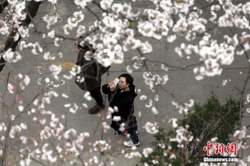 【武汉大学樱花初绽】近日,武汉大学内樱花绽放,吸引众多赏花人前来观赏。 中新社记者 张畅 摄